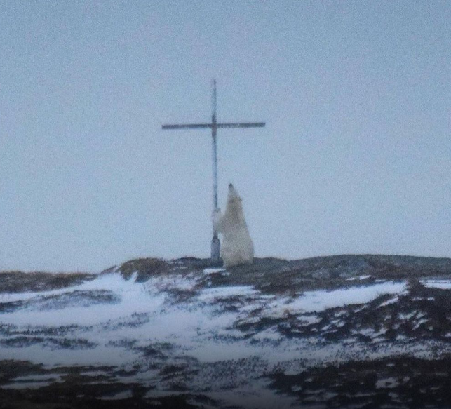 Photographer Captures Polar Bear Seemingly Praying Beside a Cross in Canada
